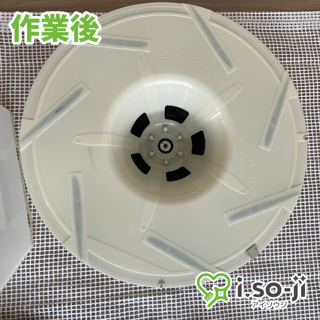 業務用の天井埋め込み型エアコンのファンです。大きなファンもしっかり洗浄します。