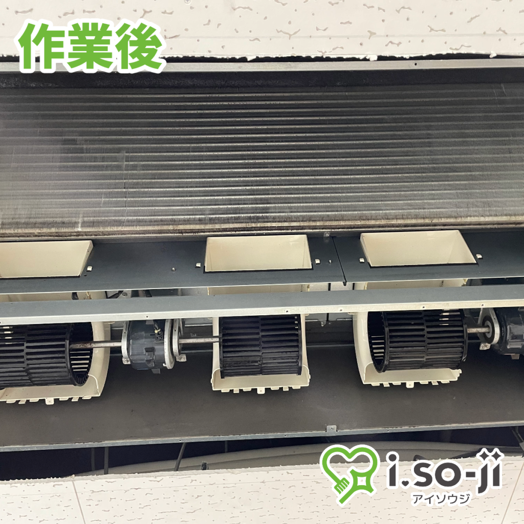 業務用の天井吊り下げエアコンです。大きなエアコンはプロの分解洗浄が定期的に必要です。