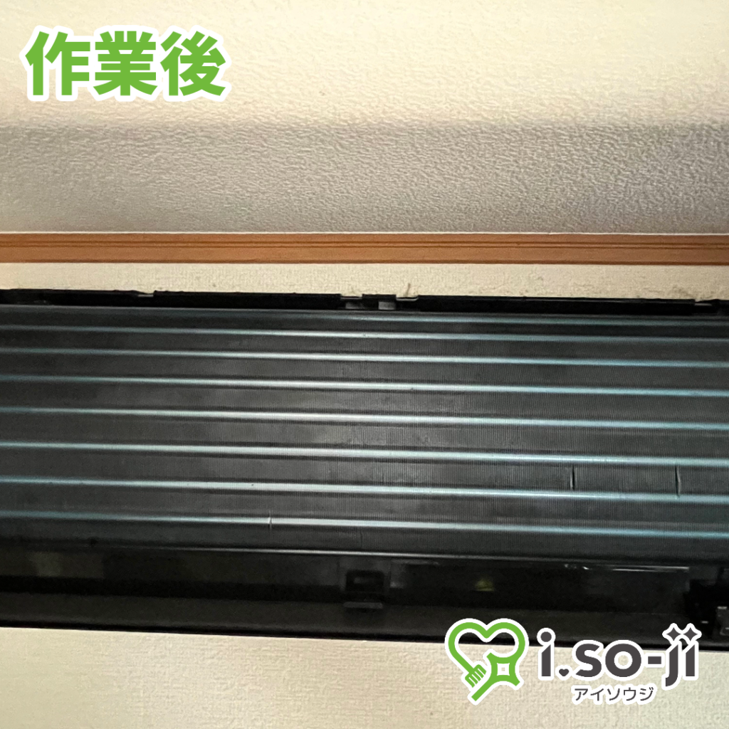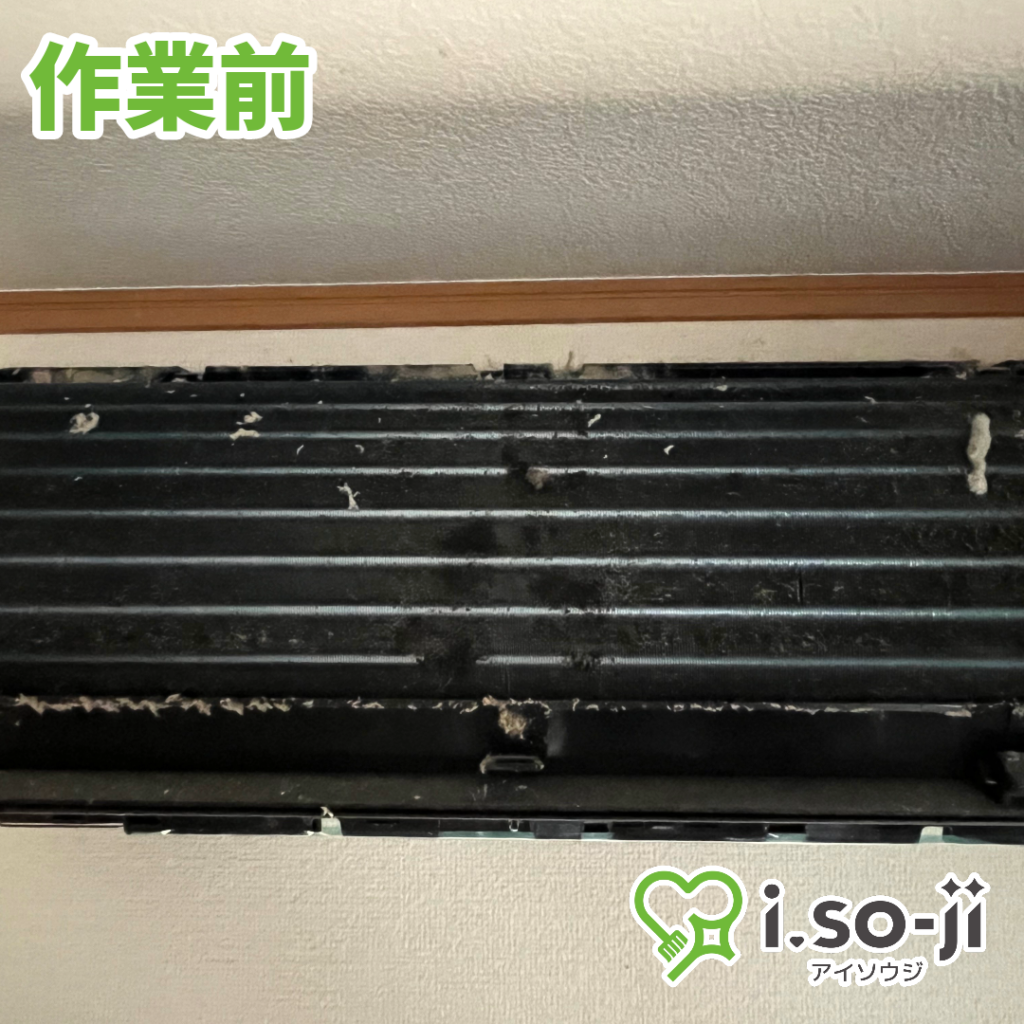 家庭用の壁掛エアコンです。黒いカビ+ホコリでカビ臭さも充満。高圧洗浄で徹底的に綺麗にします。