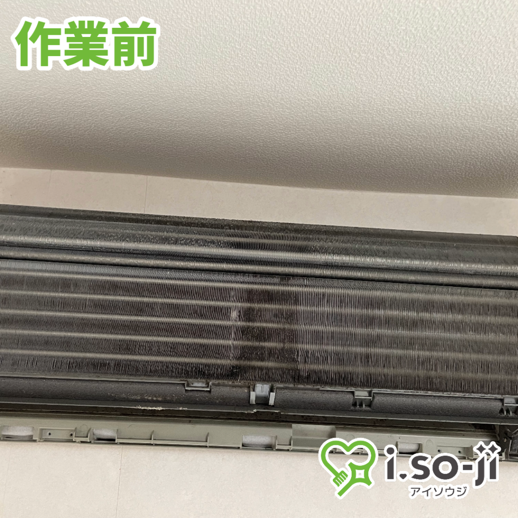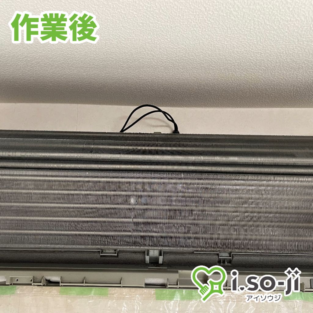 家庭用の壁掛エアコンです。熱交換器が汚れているとエアコンの効きにも影響します。掃除後はしっかりエアコンの冷えも確認できました。