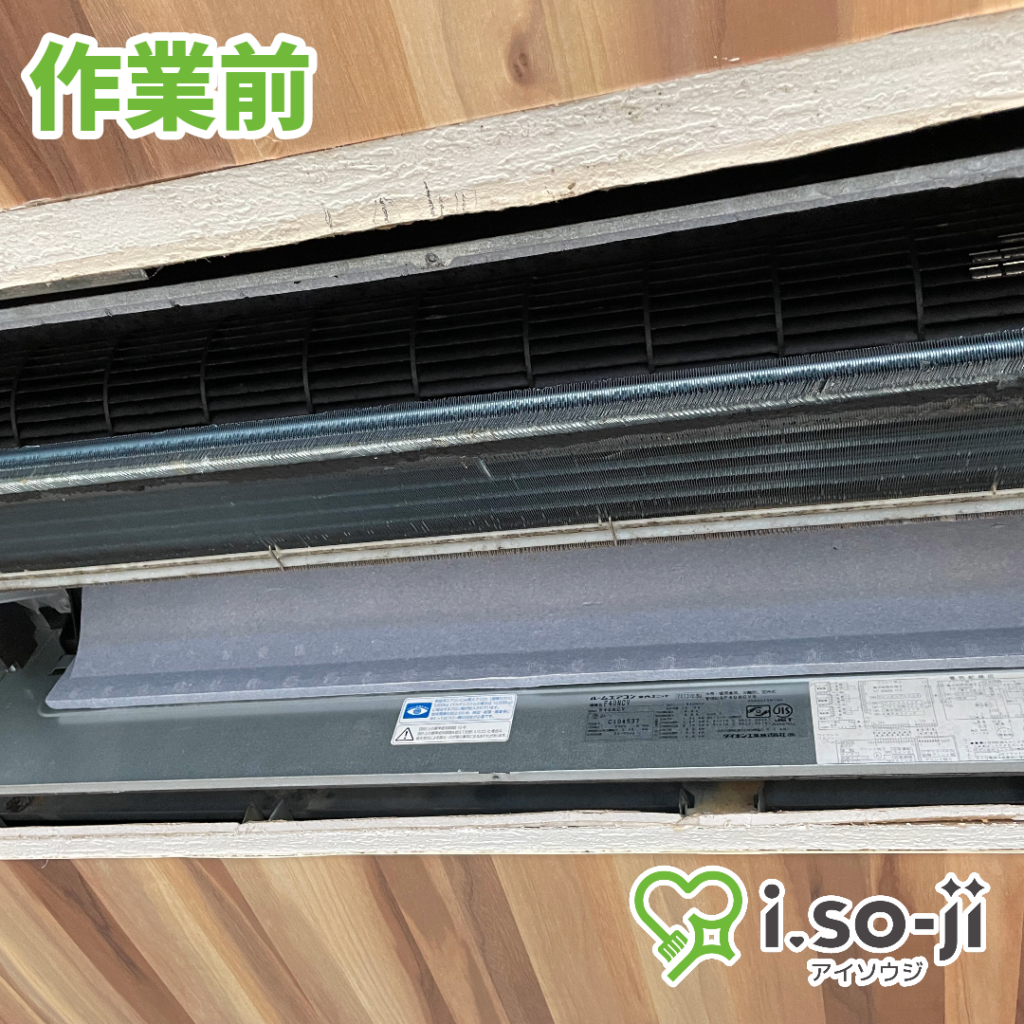 家庭用の天井埋め込みエアコンです。高圧洗浄できるように分解して徹底的に洗浄します。