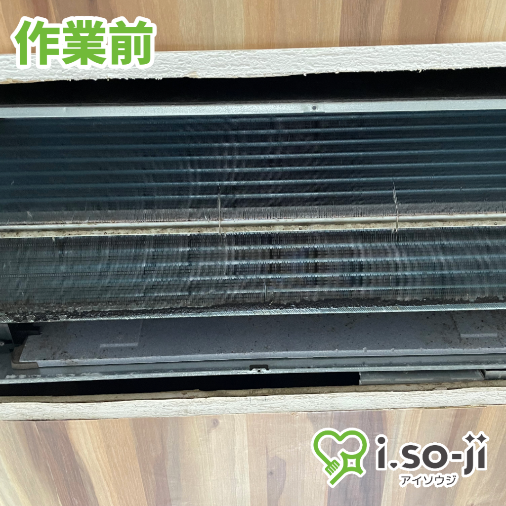 家庭用の天井埋め込みエアコンです。家庭用よりも熱交換器もファンも大きいので洗浄が大変です。