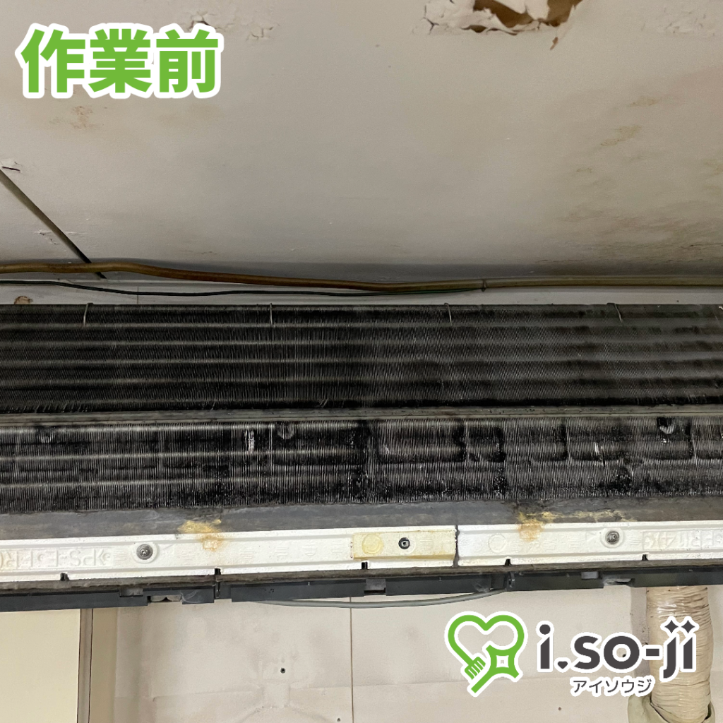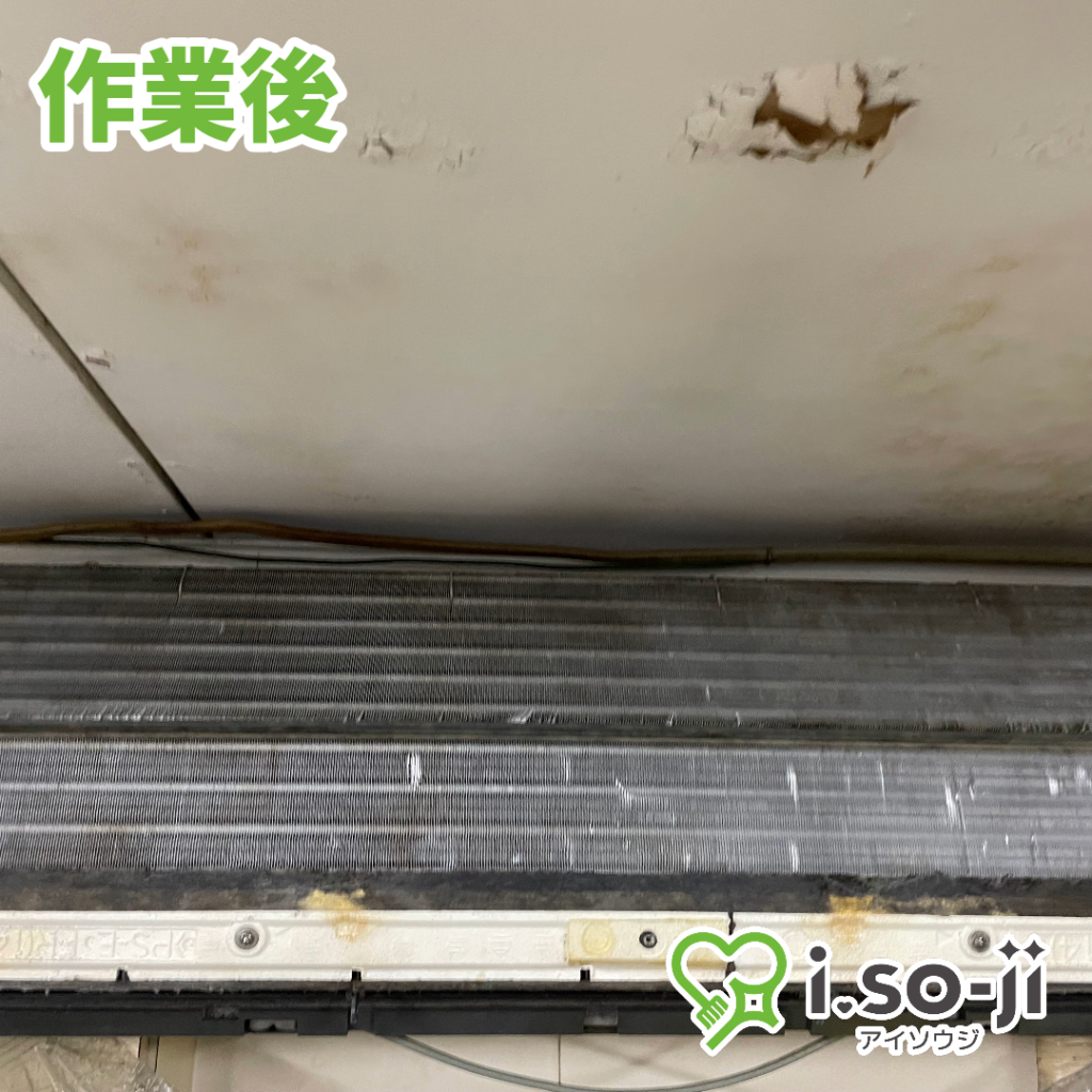 店舗様のエアコンです。長年使っていると感覚が麻痺してしまいますが、かなりのカビ臭さでした。