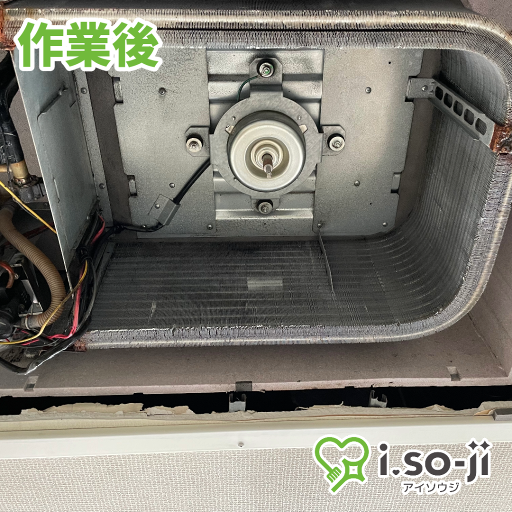 古い業務用エアコンです。もうあまり見受けられないエアコンでしたが、しっかり綺麗になりました。