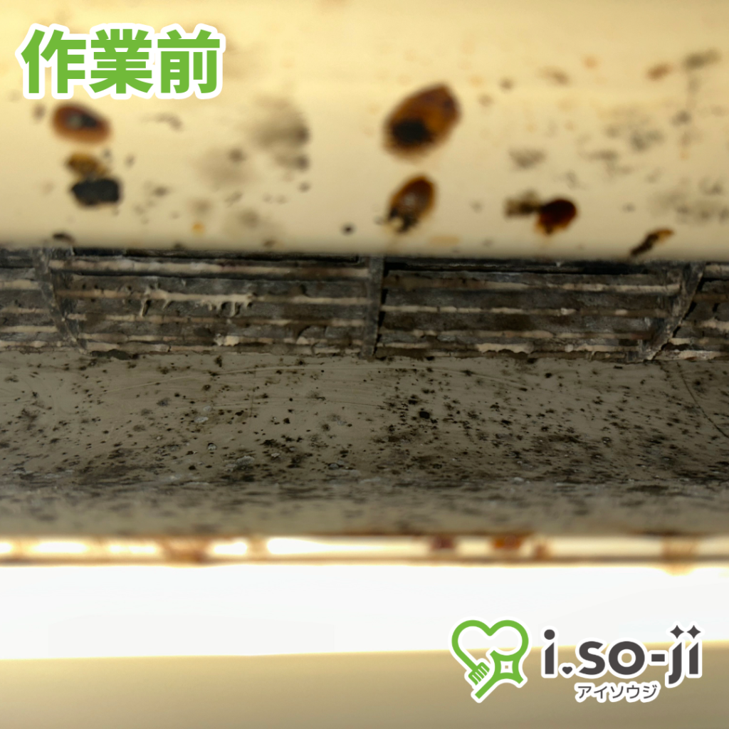 カビ汚れが飽和状態です。10年近くお掃除していなかったとのこと。健康な人でも具合が悪くなってしまいます